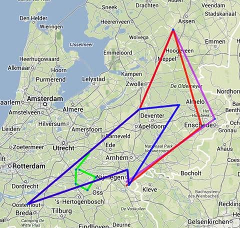 Dick, flew even more miles , starting at 2 PM, 11 minutes earlier then his mate Ron, he flew 345,91 miles [556 km.] rounded 11 TP’s and had a speed of 96,48 mph.[= 155 km/h] and was runner up.